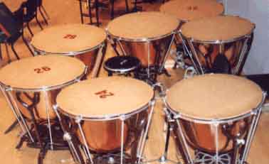 in some cases of older notation, timpani is written in C with the root pitch indicated (ex. Timpani in D) Some timpani,