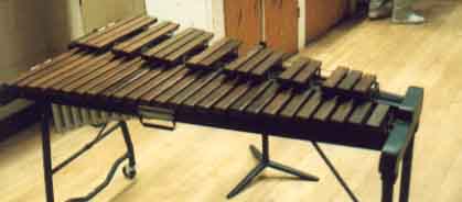 glockenspiel typically used by marching bands is the same instrument but has two fewer notes on the bottom and three fewer on the top; mounted in a lyre-type frame. |
