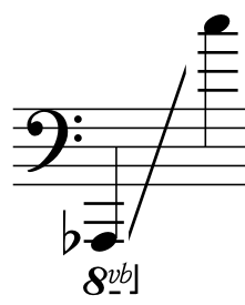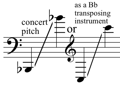 Eb3(or C3)-G6 | a 9th lower; a whole step lower when written in bass clef Treble clef in Bb transposition is preferred modern notation. |