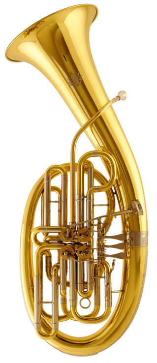Both the German style Tenor tuba and English style Euphonium are common. They are identical in pitch and therefore interchangeable for all practical purposes. This instrument should not be confused with